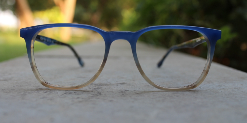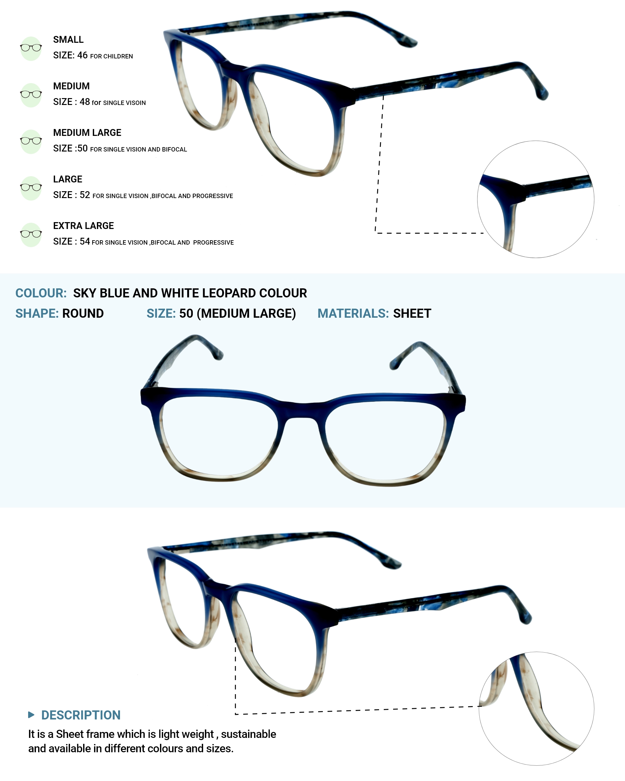 LENS PLUS STELLAR ACETATE ROUND EYE FRAME SKY BLUE AND WHITE LEOPARD DOUBLE COLOR